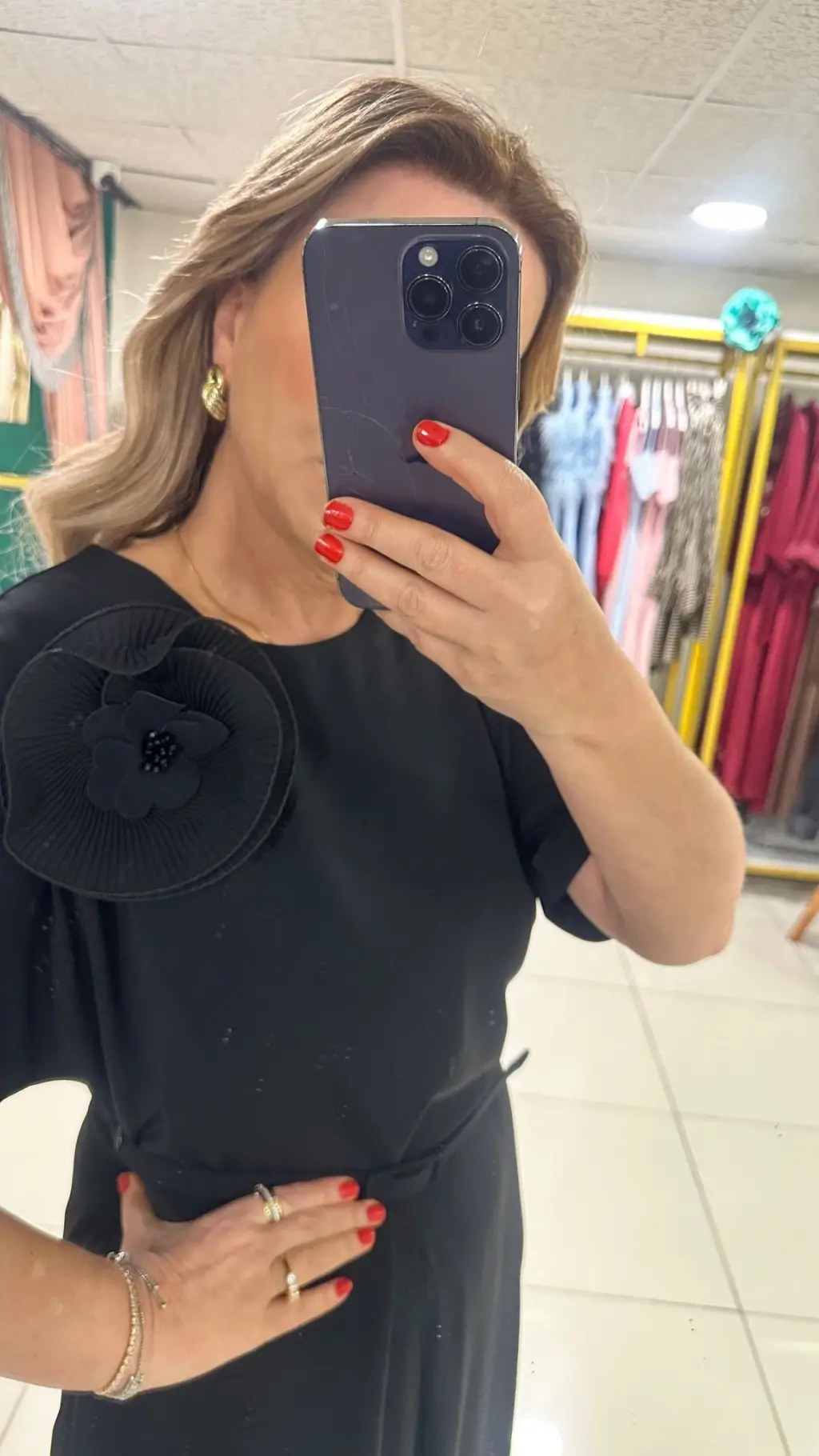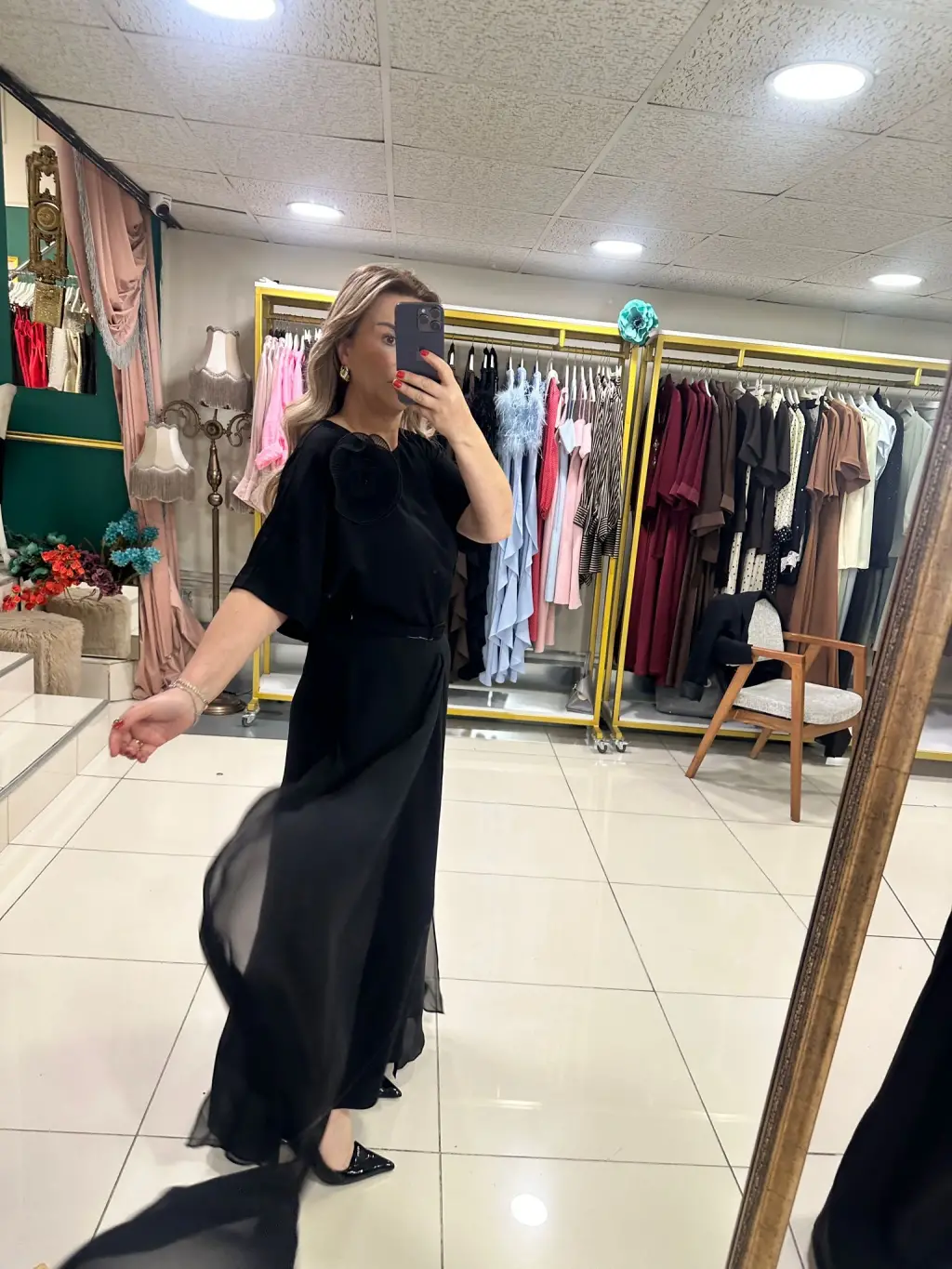 PAMUK SATEN TAŞ DETAYLI ELBİSE