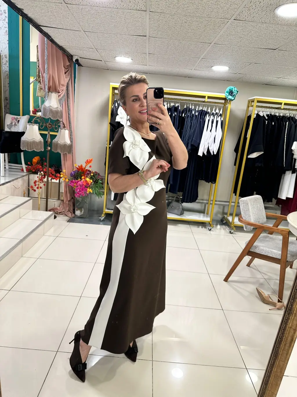 KAHVERENGİ GÜLLÜ ELBİSE