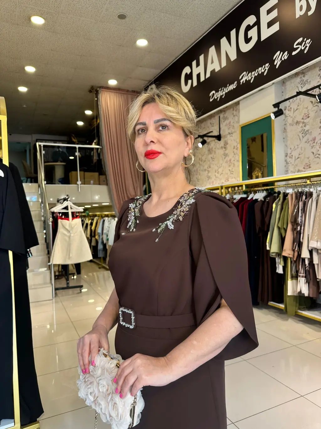 ABİYE KAHVERENGİ TAŞLI ELBİSE