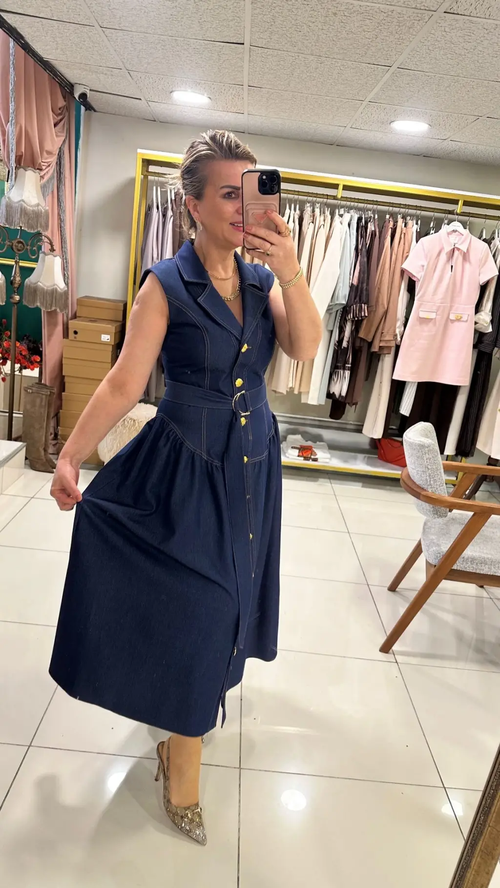 PAMUK SATEN TAŞ DETAYLI ELBİSE
