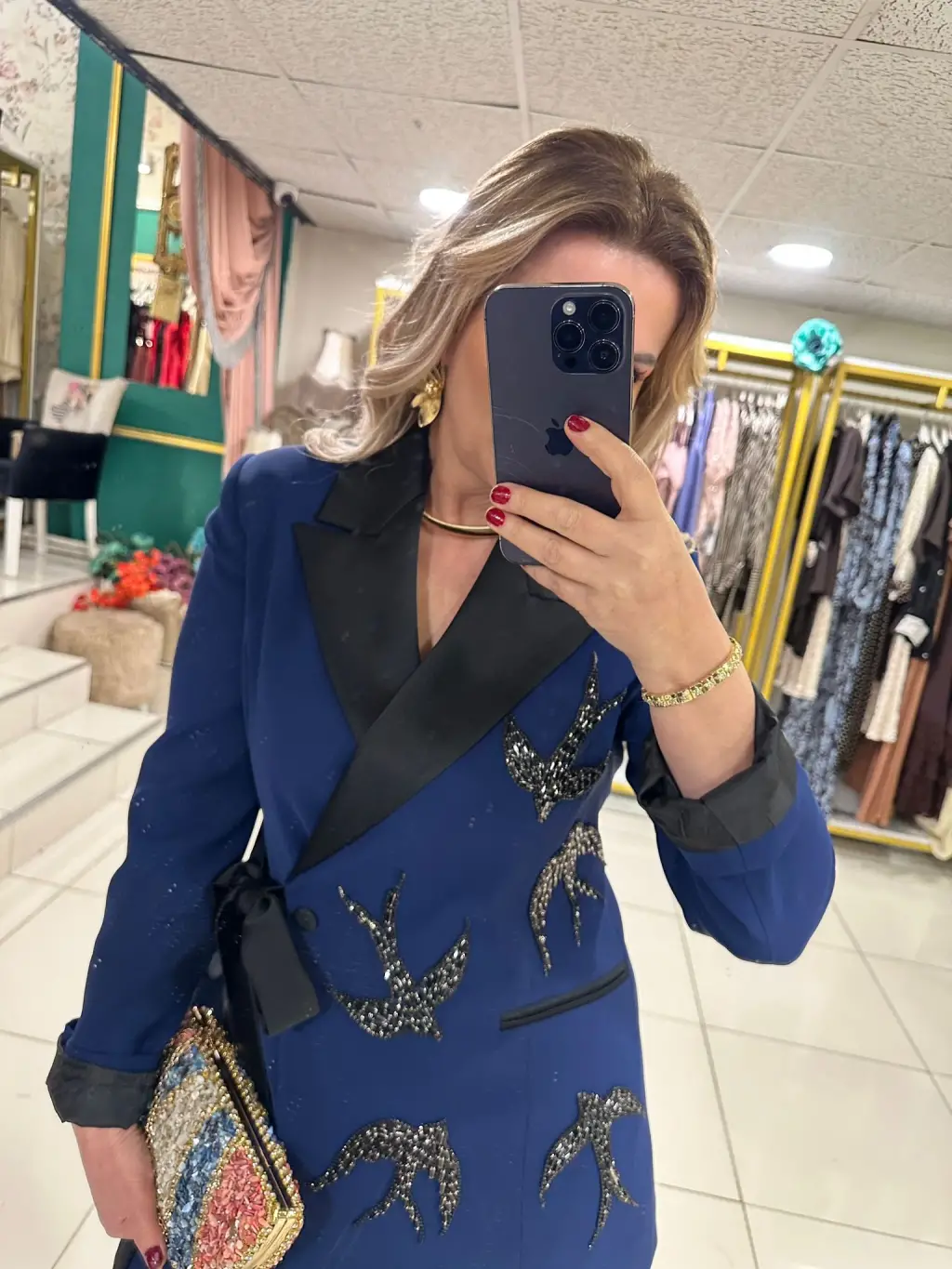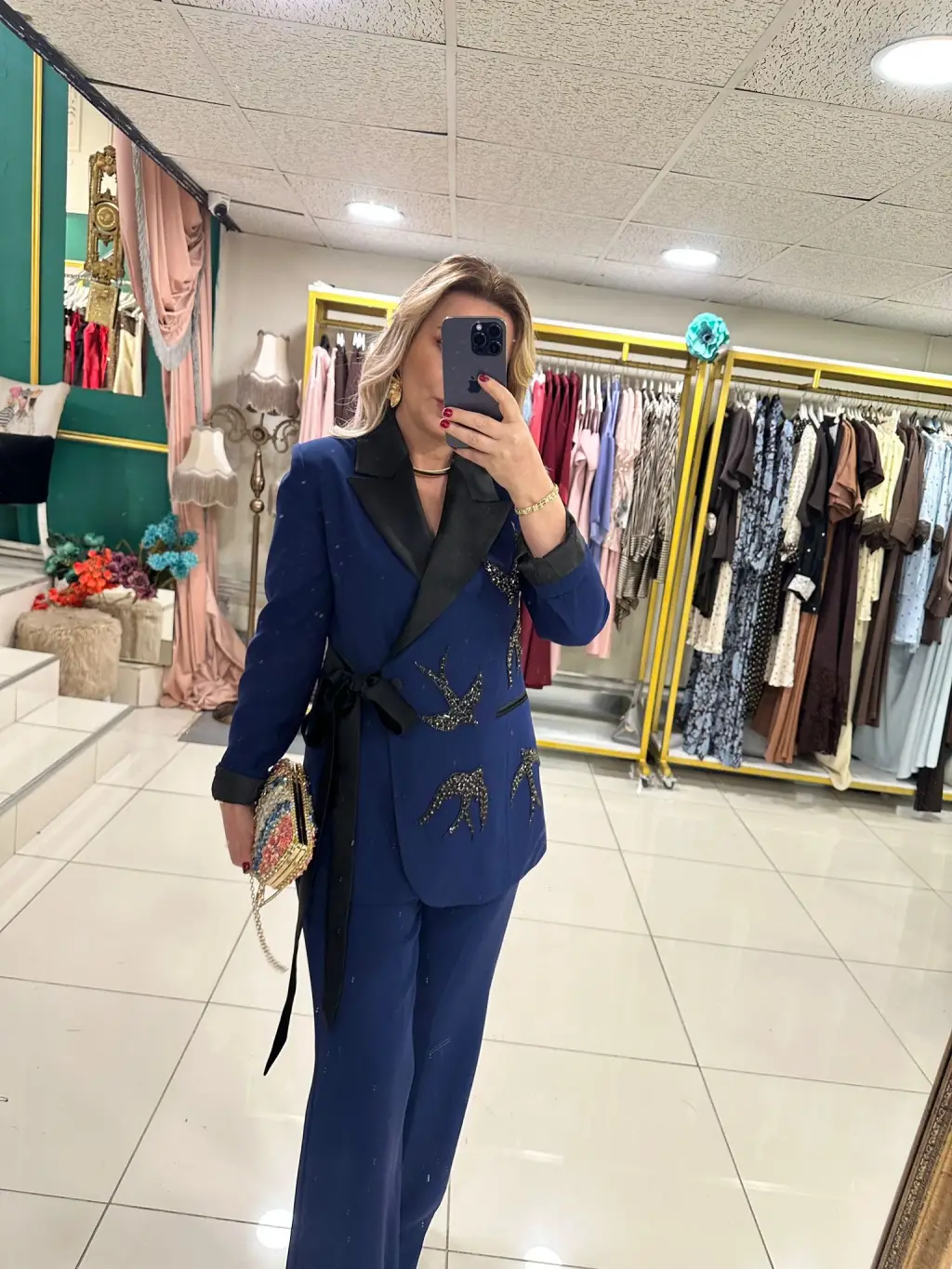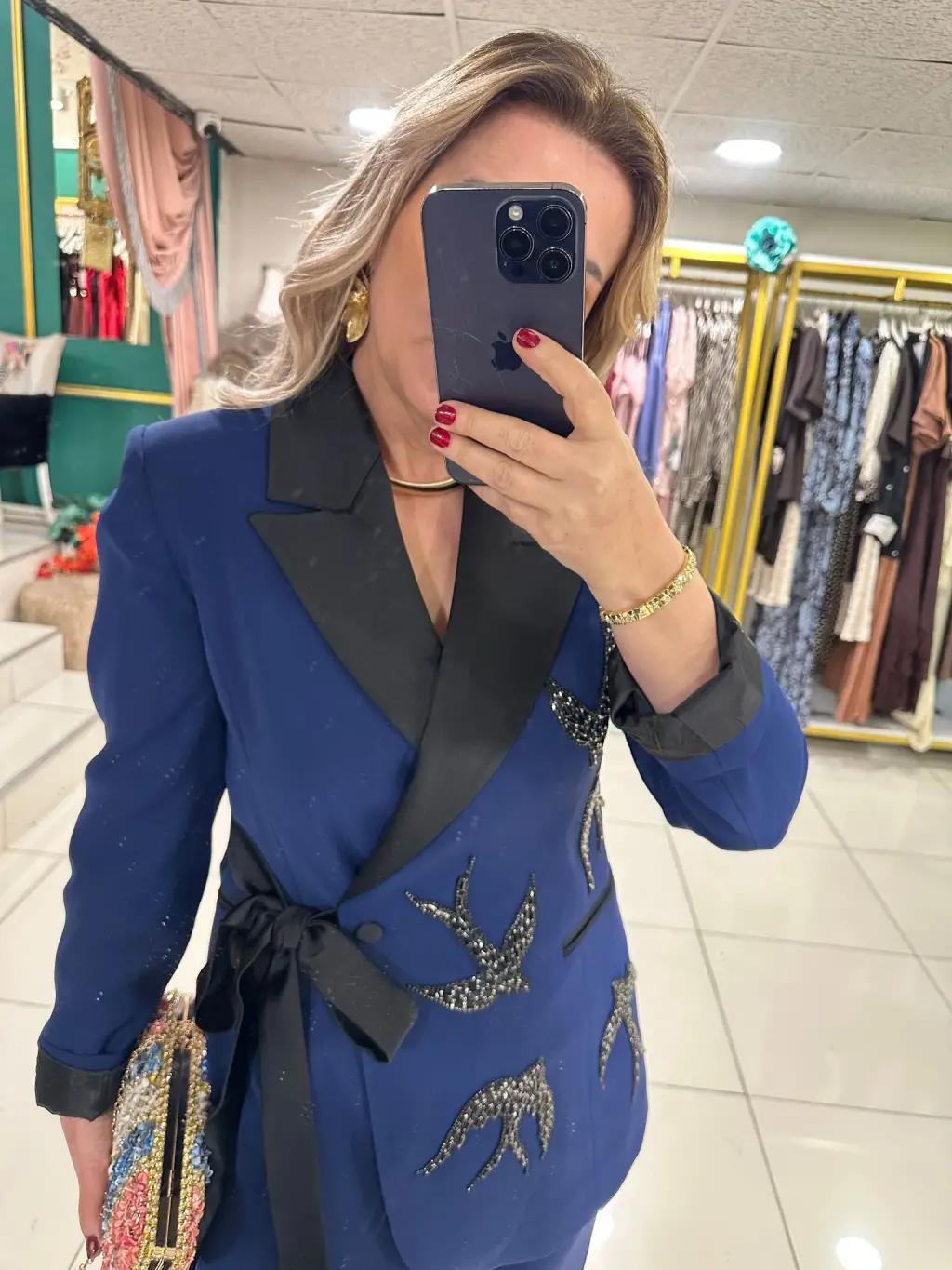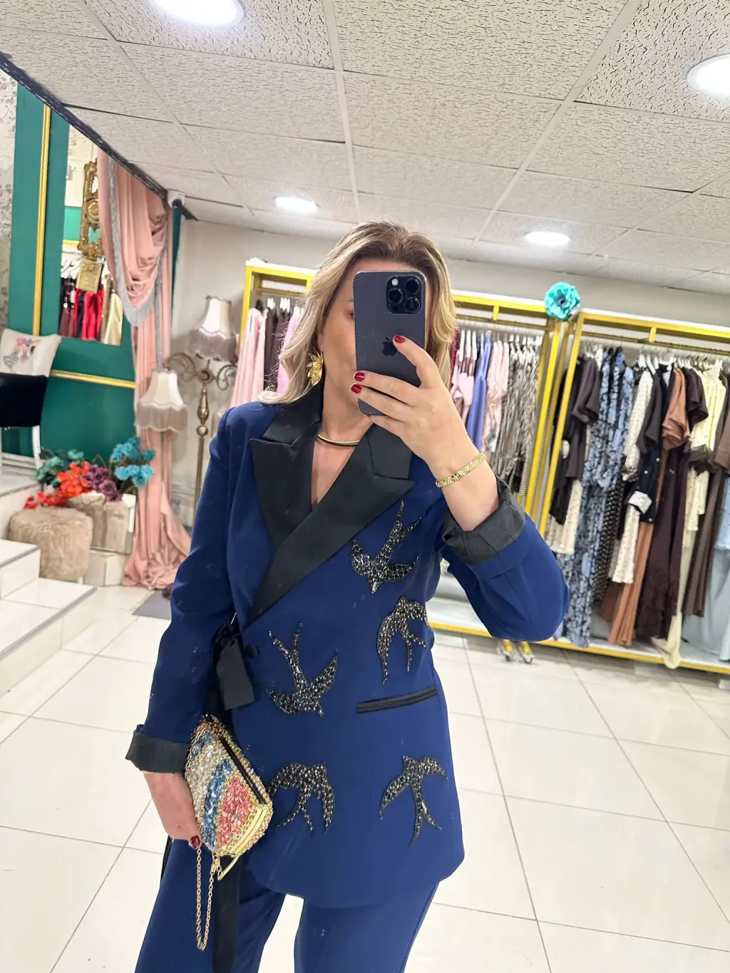 ETEKLİ TAŞLI 2Lİ TAKIM LACİVERT