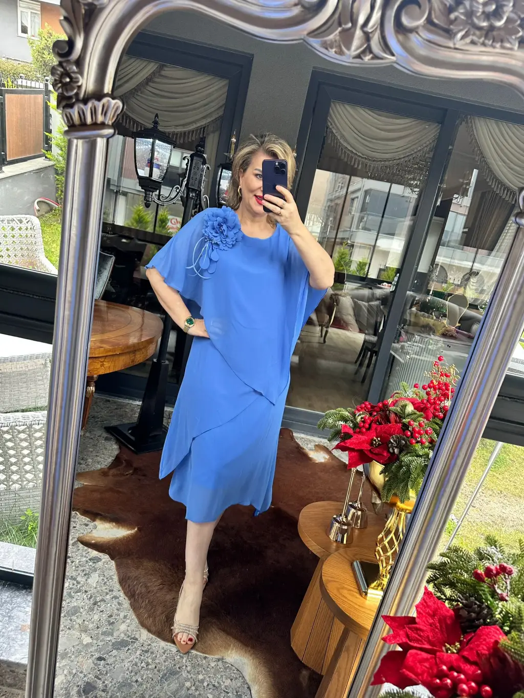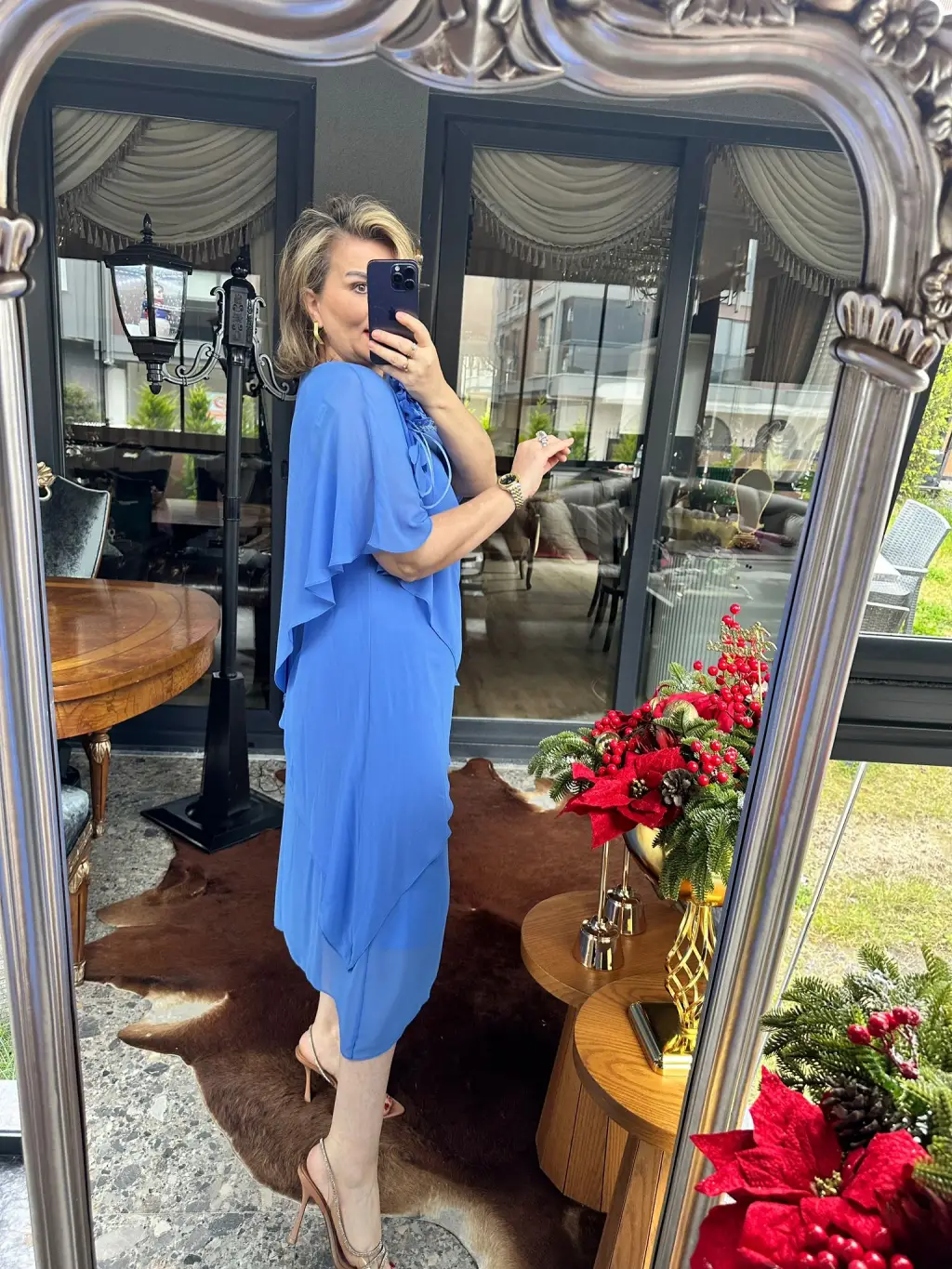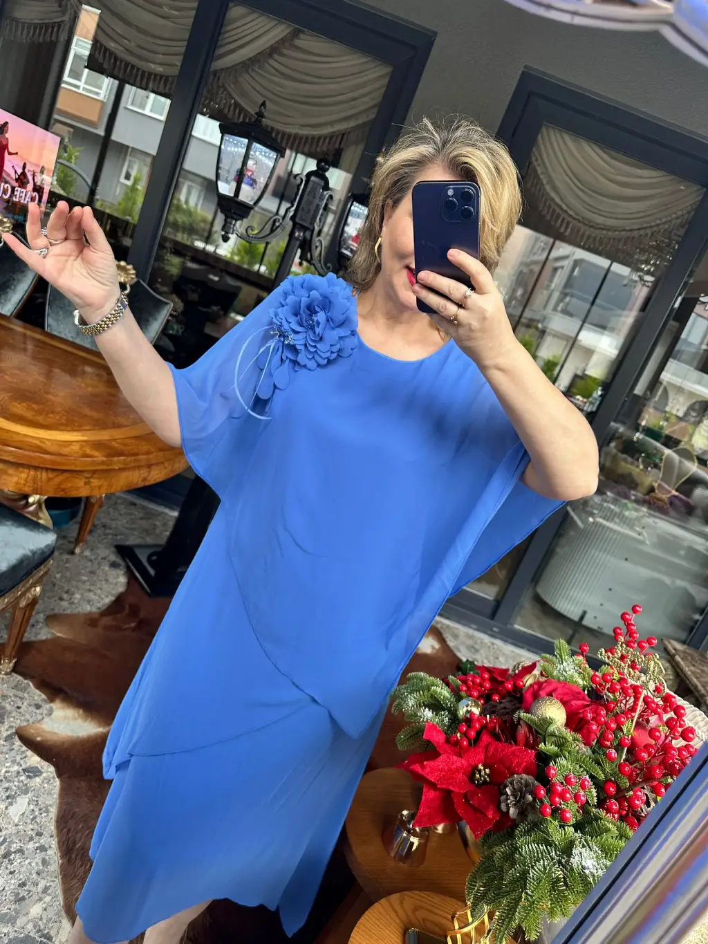 PAMUK SATEN TAŞ DETAYLI ELBİSE