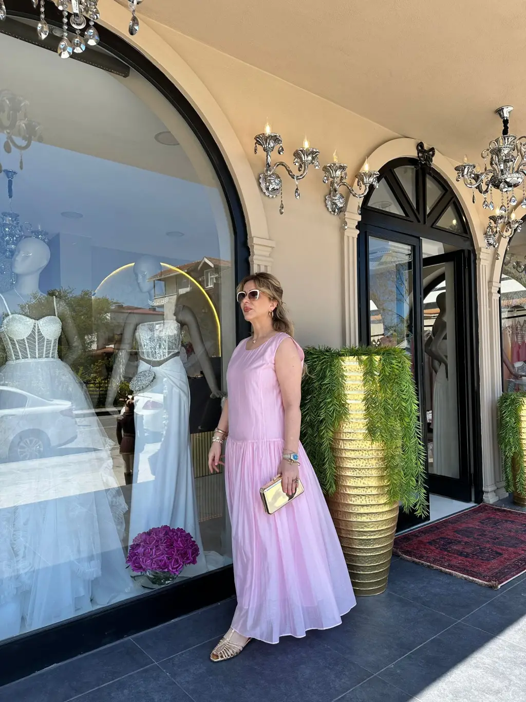 PAMUK SATEN TAŞ DETAYLI ELBİSE