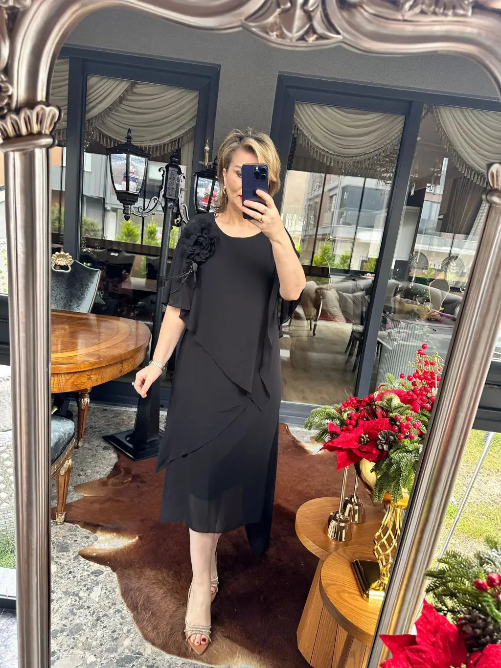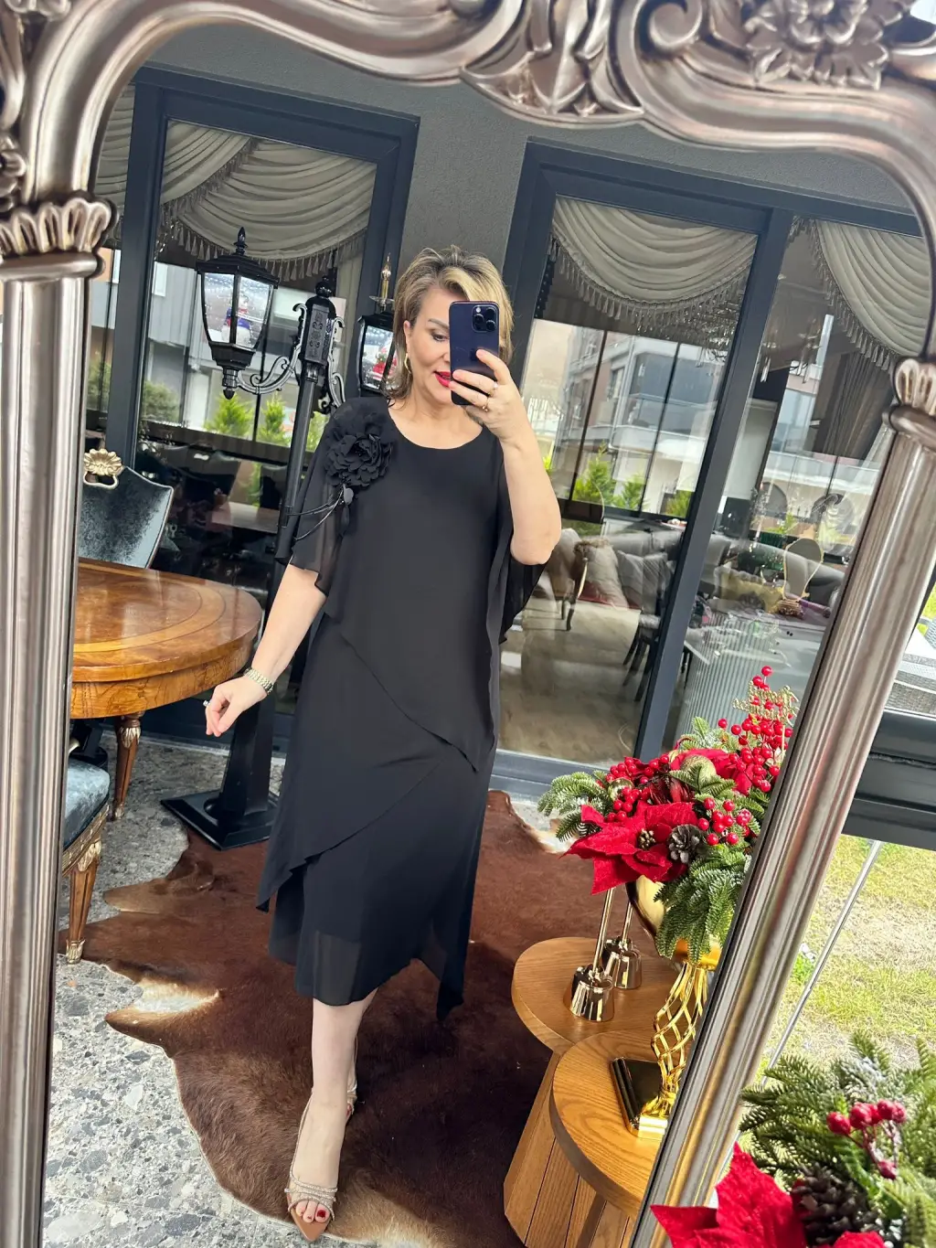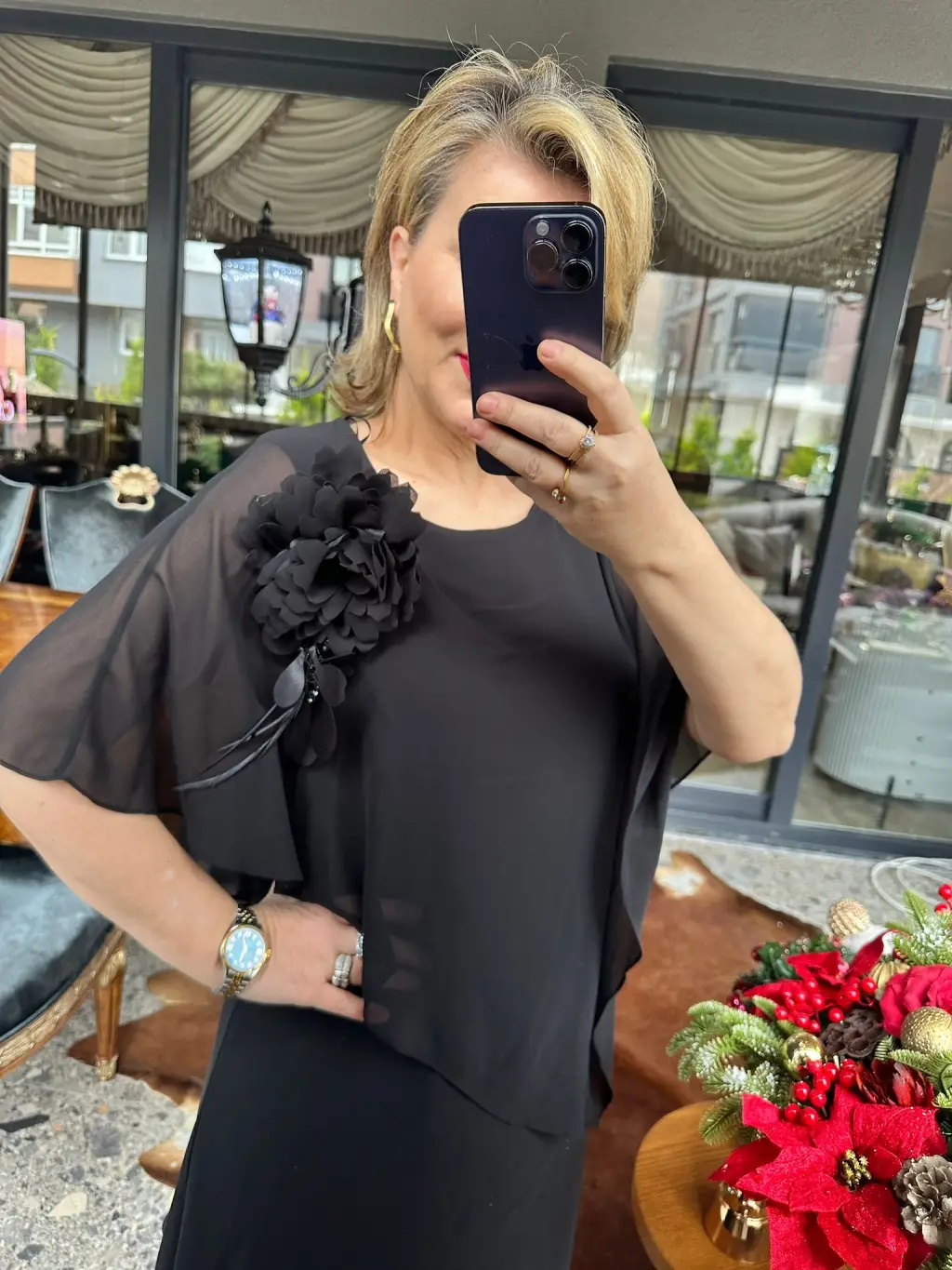 SİYAH GÜLLÜ ELBİSE