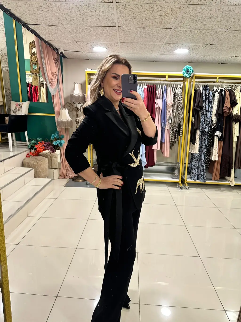 ETEKLİ TAŞLI 2Lİ TAKIM LACİVERT