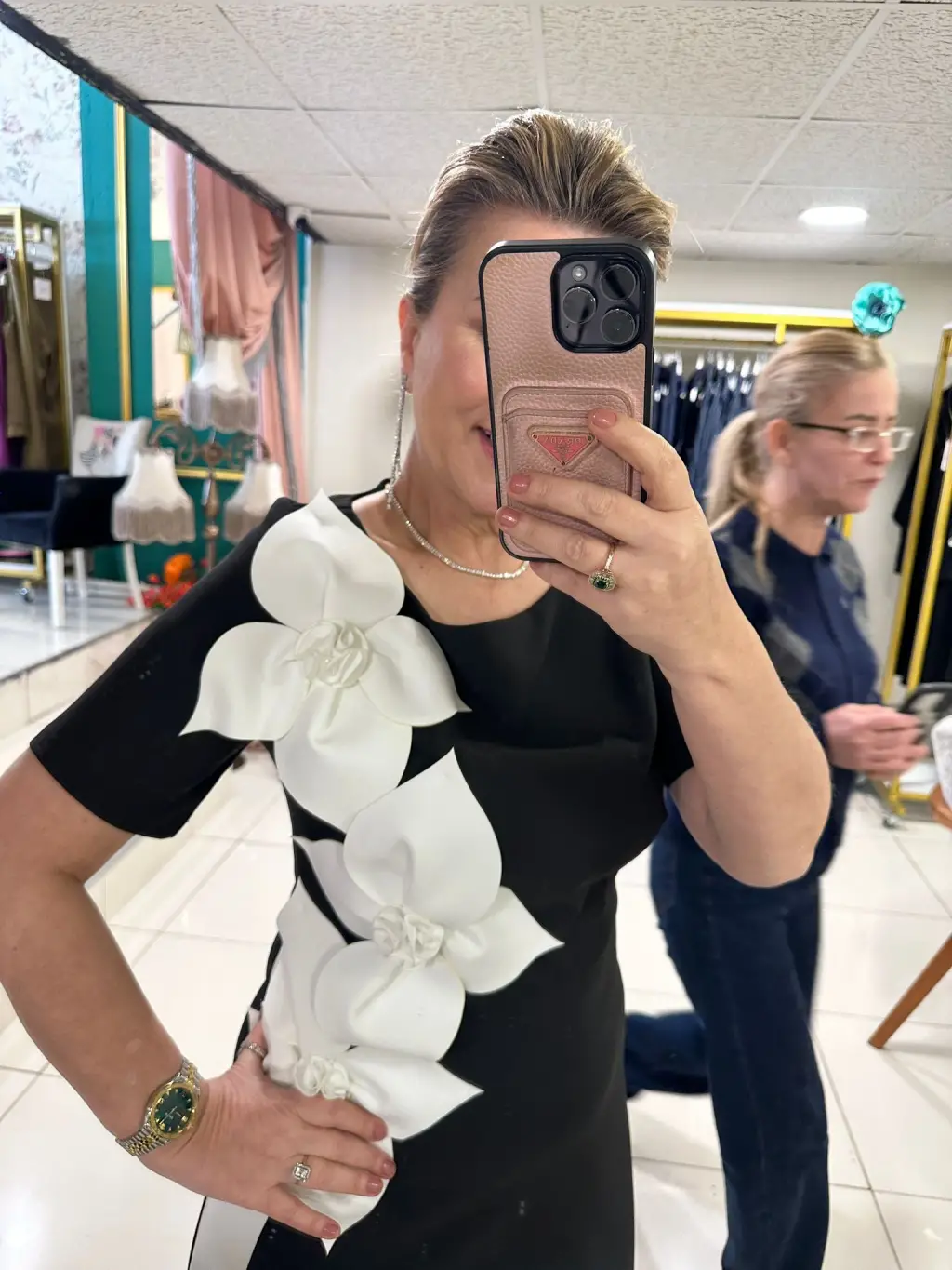 PAMUK SATEN TAŞ DETAYLI ELBİSE