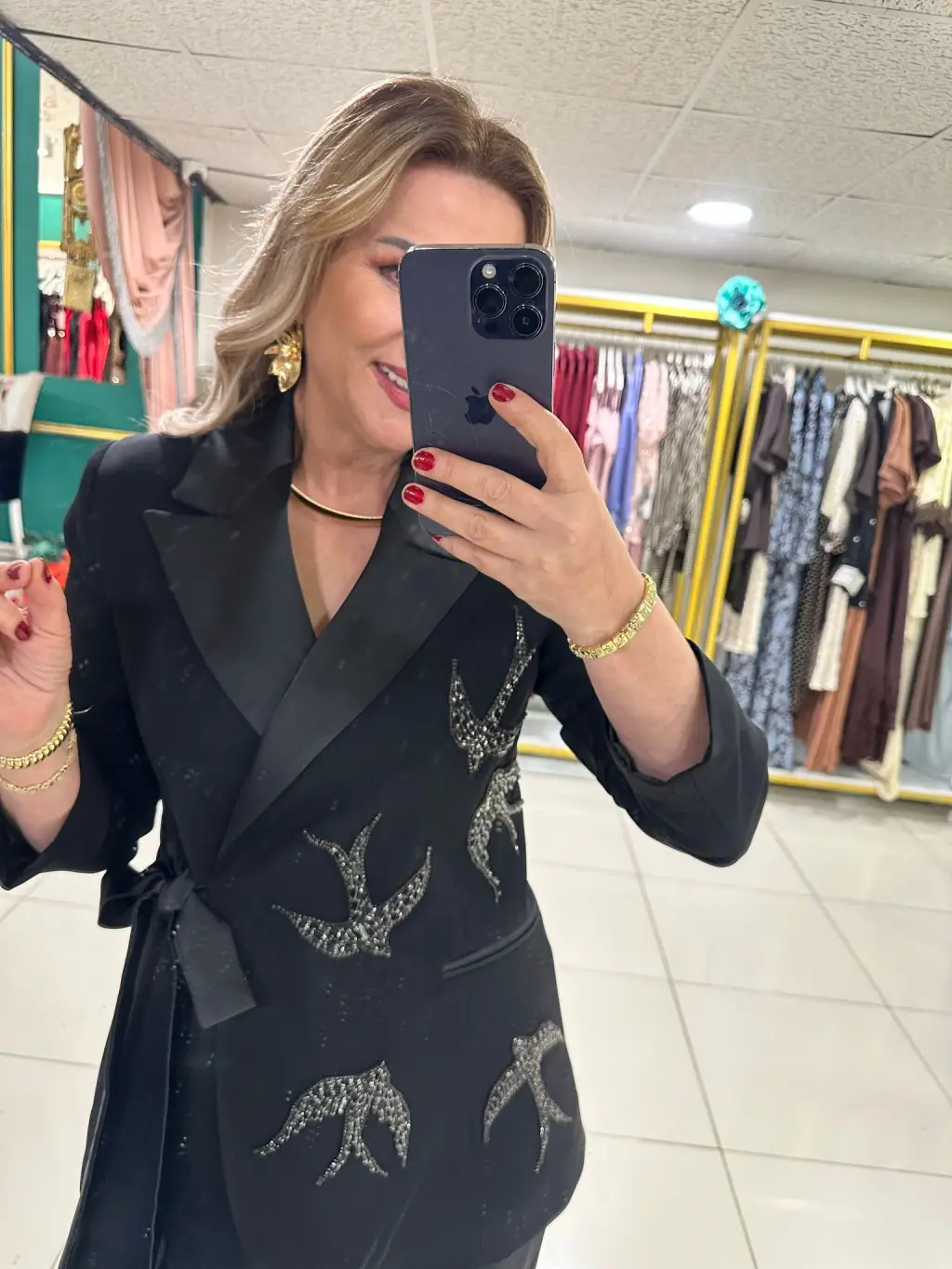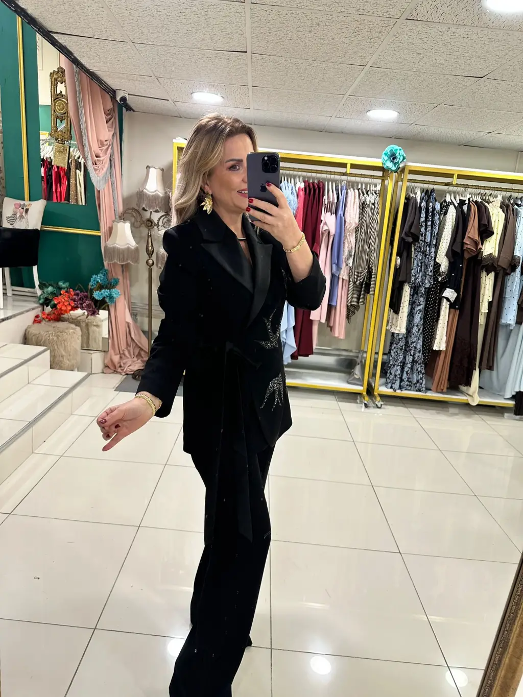 ETEKLİ TAŞLI 2Lİ TAKIM LACİVERT