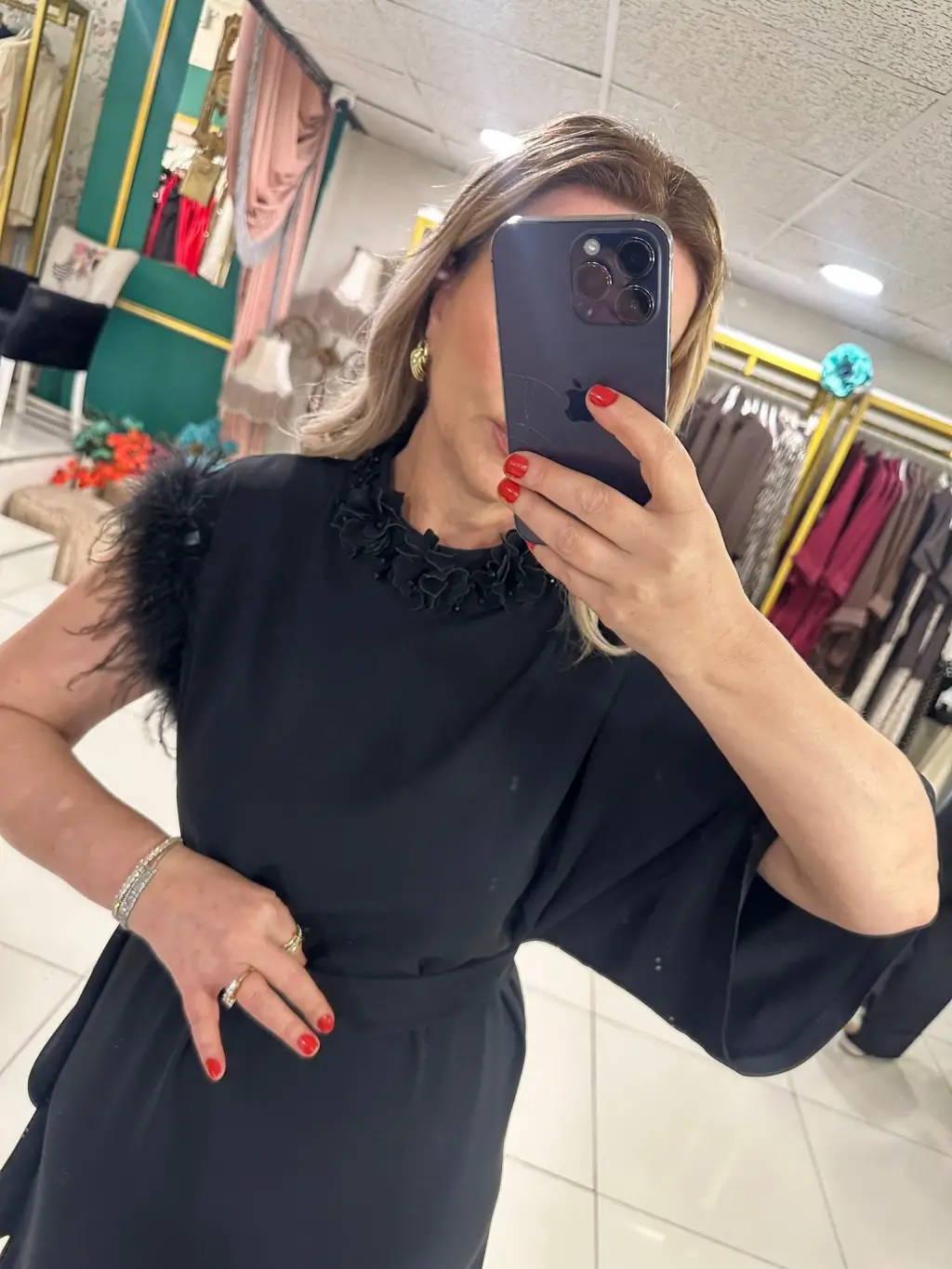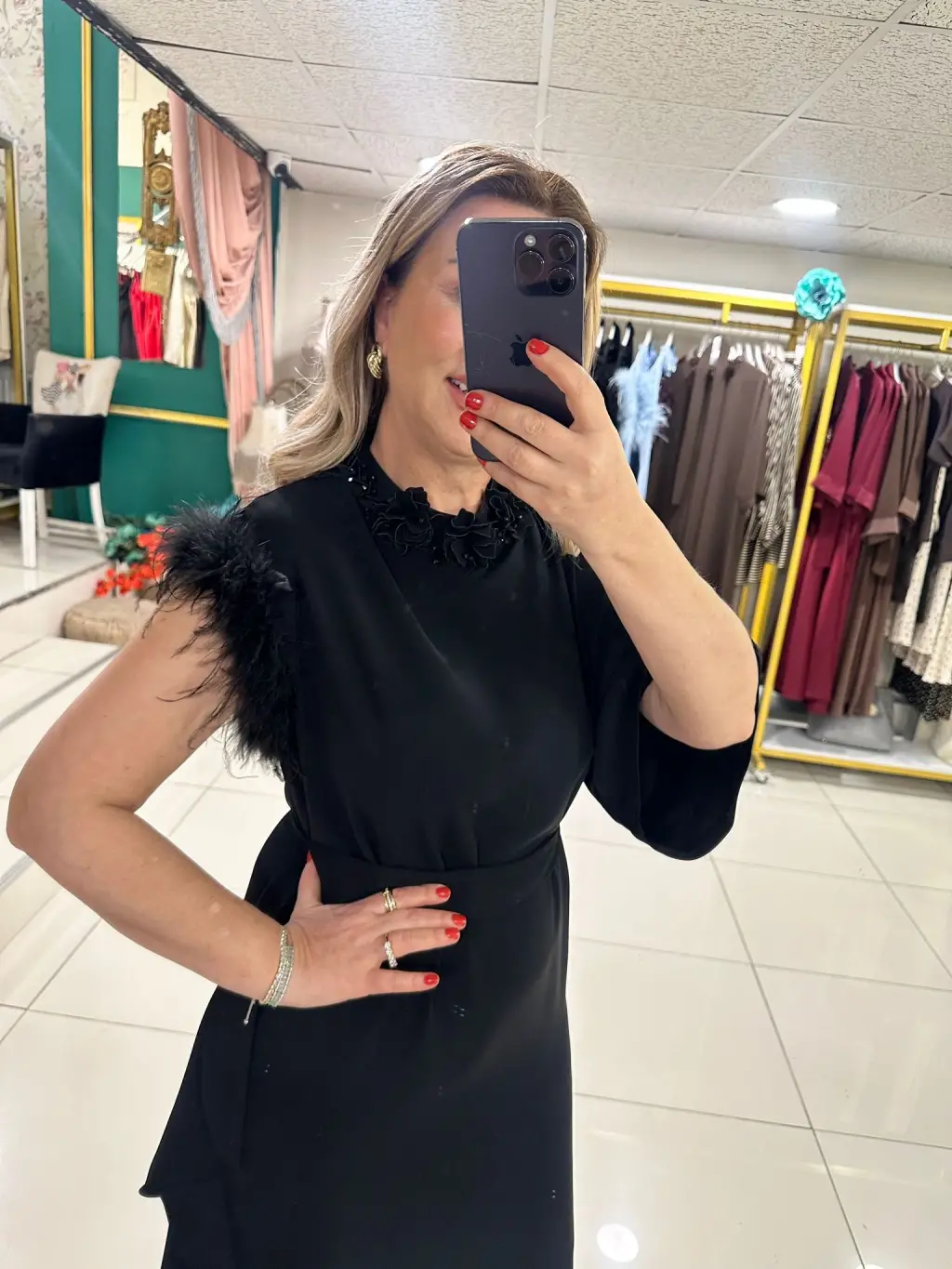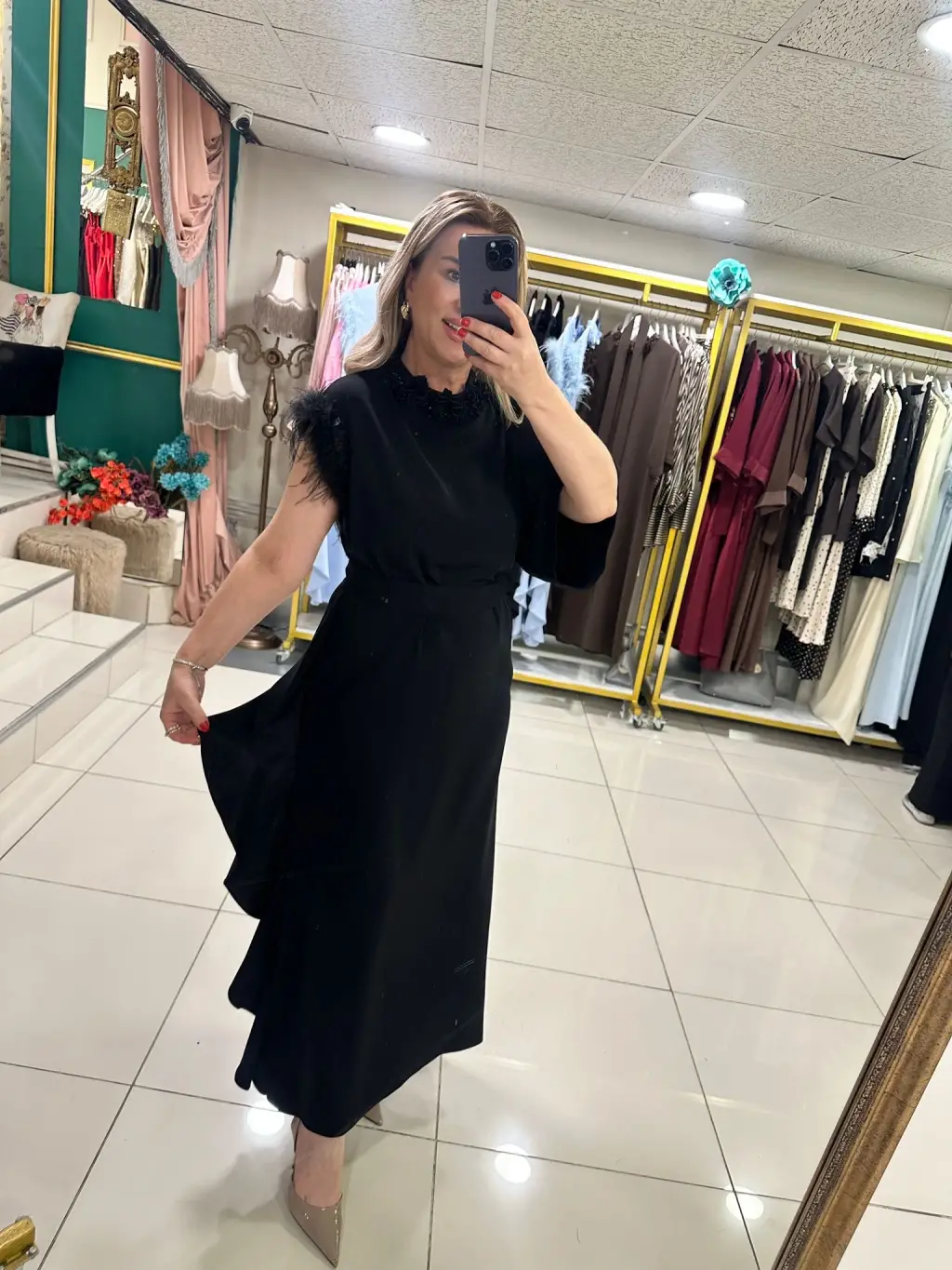 PAMUK SATEN TAŞ DETAYLI ELBİSE