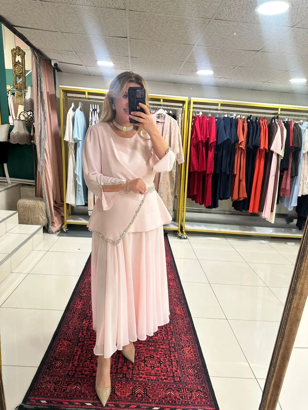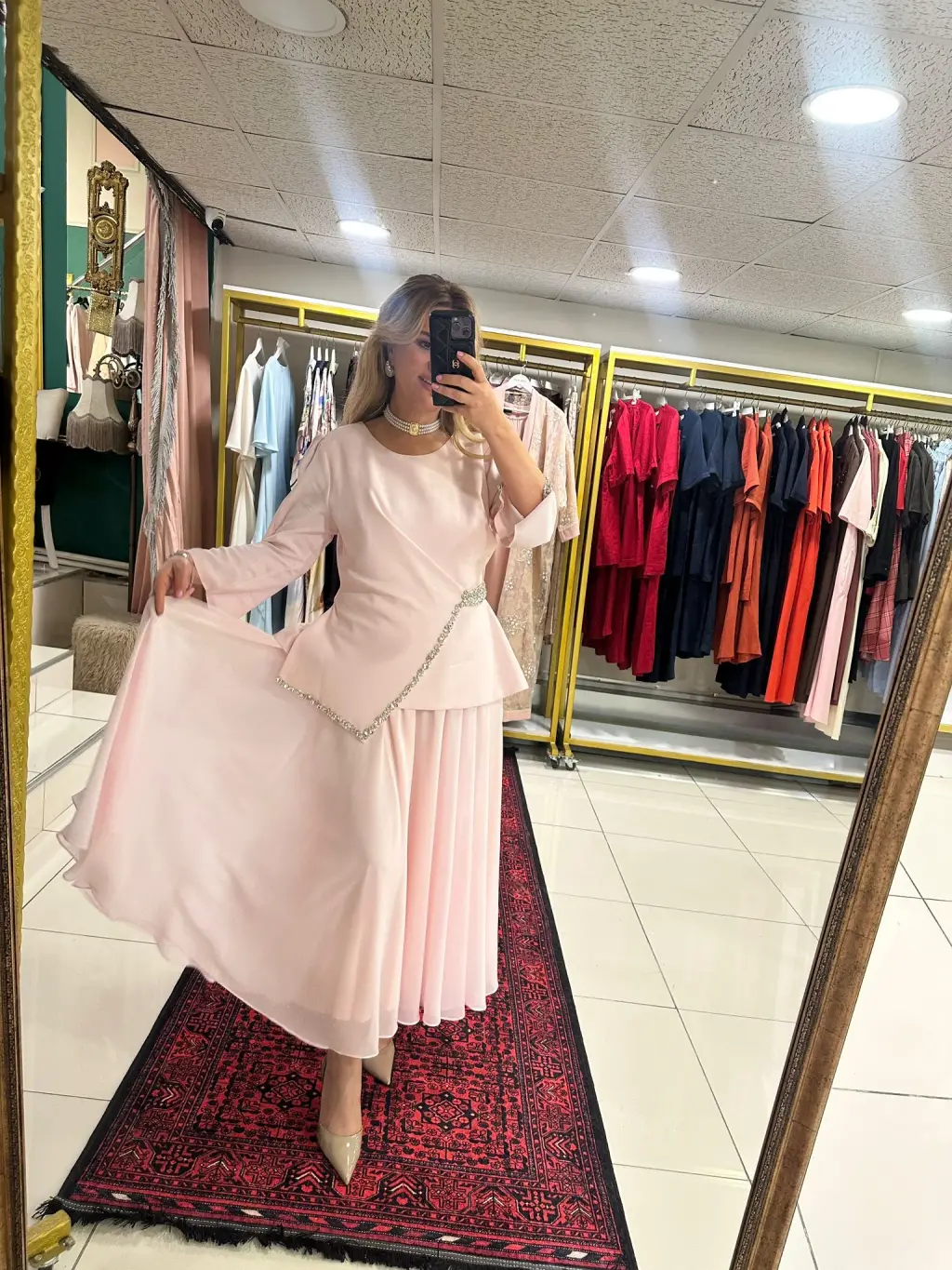 PAMUK SATEN TAŞ DETAYLI ELBİSE