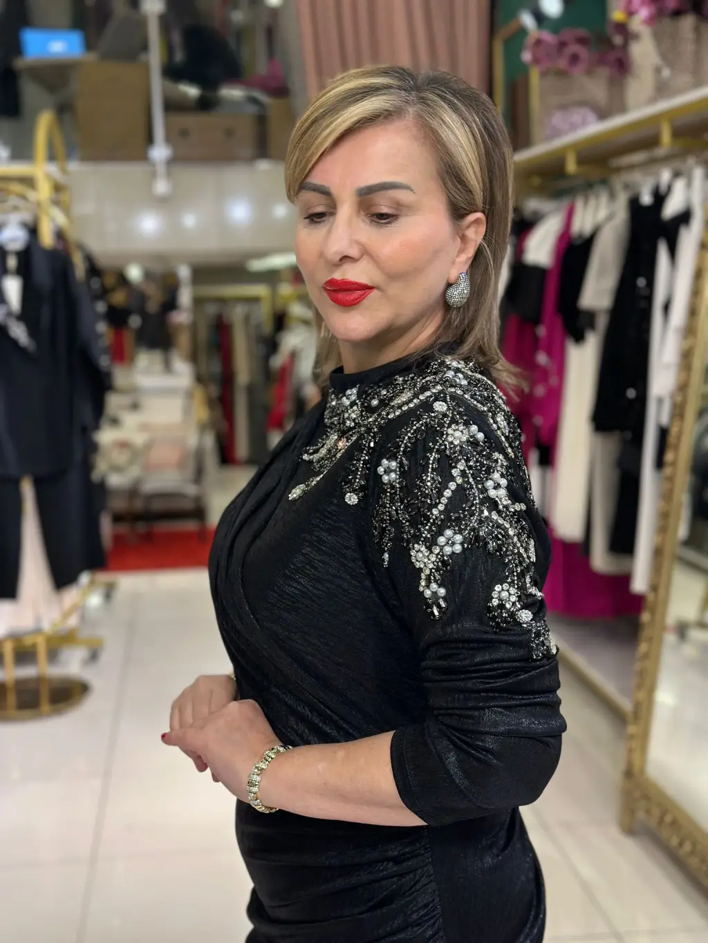 PAMUK SATEN TAŞ DETAYLI ELBİSE